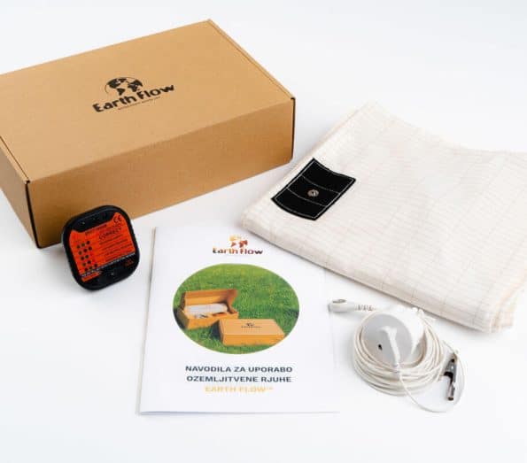 • ozemljitveno rjuho (95 % organski bombaž, 5 % srebrne prevodne niti; velikost 200 × 90 cm; pranje pri 30 °C),