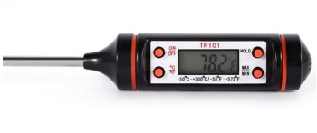 9,90 €Pôvodná cena bola: 9,90 €.7,90 €Aktuálna cena je: 7,90 €.Digitálny teplomer s takým širokým rozsahom merania je nevyhnutným doplnkom v každej domácnosti. Teplomer má **4 funkčné tlačidlá**, ktoré sa úplne jednoducho používajú. Teplota meranej látky sa zobrazí do 4–7 sekúnd. Je vhodný na *presné meranie teploty potravín a tekutín v kuchyni a domácnosti*.